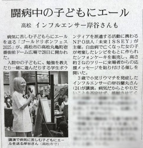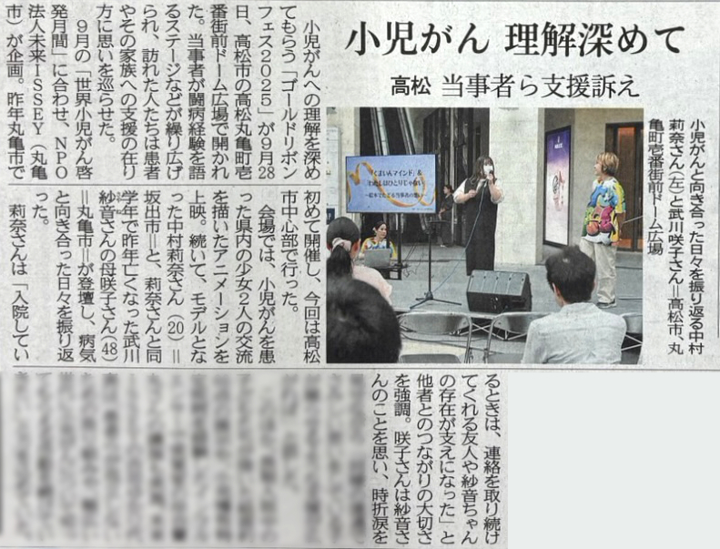 10月2日(木)の四国新聞に、「ゴールドリボンフェス2025」が掲載されました。