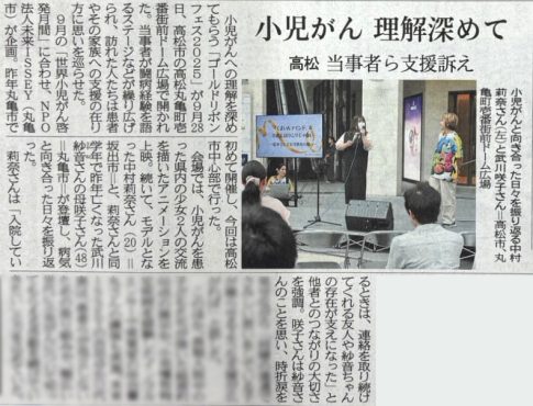 先月9月28日(日)に、高松丸亀町壱番街前ドーム広場で開催した「ゴールドリボンフェス」の様子を記事にしていただきました。