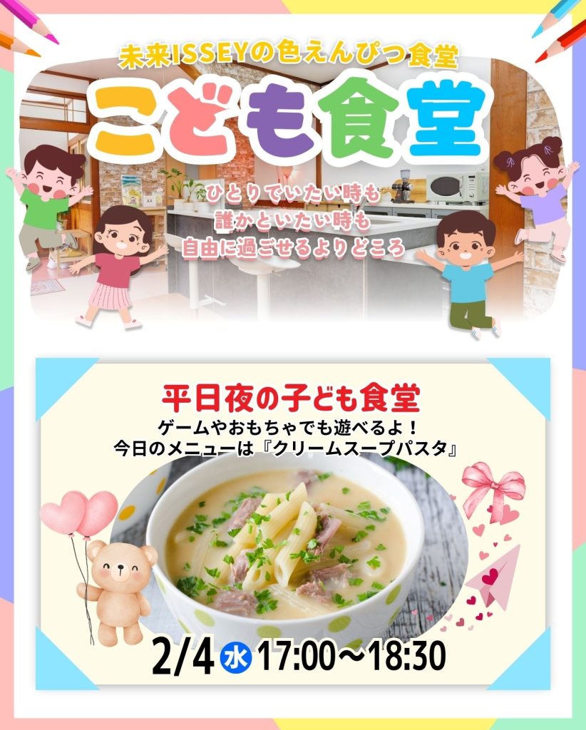 - 02/04(水)|ナイト色えんぴつ食堂〜未来ISSEYの子ども食堂〜