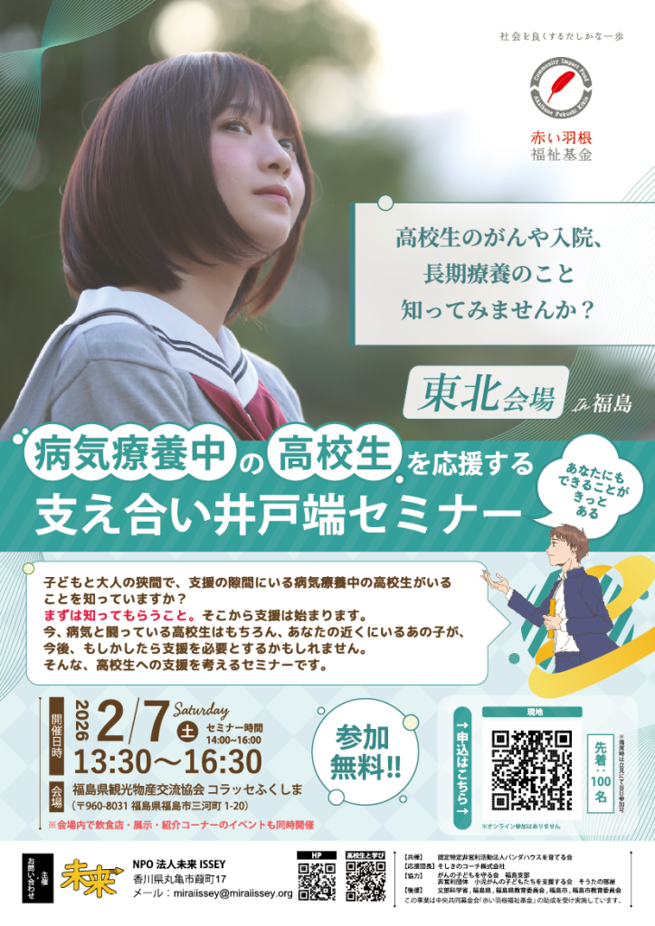 - 02/07(土)|病気療養中の高校生を応援する支え合い井戸端セミナー【東北大会】