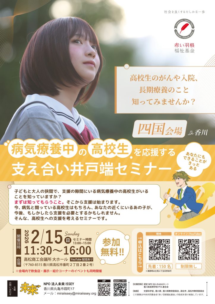- 02/15(日)|病気療養中の高校生を応援する支え合い井戸端セミナー【四国大会】
