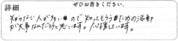 知っていれば行動してくれる人もいっぱいいるはずです。