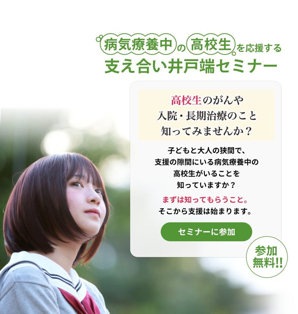 未来ISSEYでは、昨年 「病気療養中の高校生を応援する、支え合い井戸端セミナー」を全国4つの会場で開催し、多くの支援の輪をつなぐことができました。
