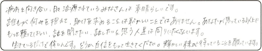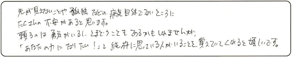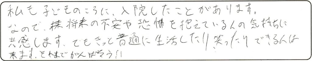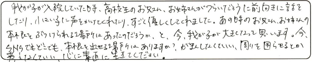 ● 例え病気は違っても、同じ境遇の友達と出会える、