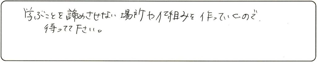 「その子の未来を信じている」から、私たちは環境づくりに取り組んでいます。