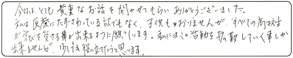 ─ 療養中の高校生の学びを支える活動にご賛同いただいた皆様 ─