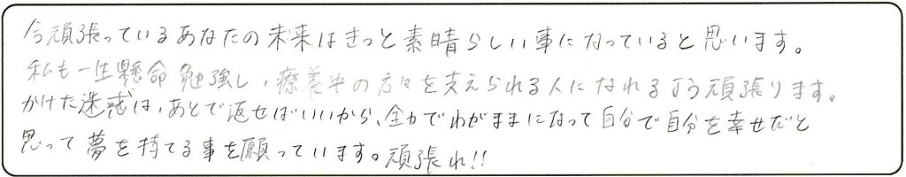 学校での勉強を続けるということは、治療後の生活や未来を思い描いているからこその行動です。